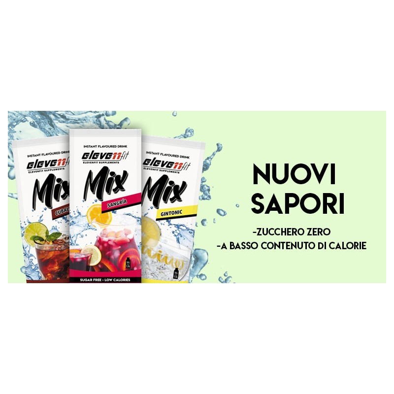 Scopri le bustine Mix Eleven Fit da 9g, l'innovativa soluzione per trasformare la tua acqua in una bevanda deliziosa e aromatizzata, senza aggiungere zuccheri o calorie indesiderate.